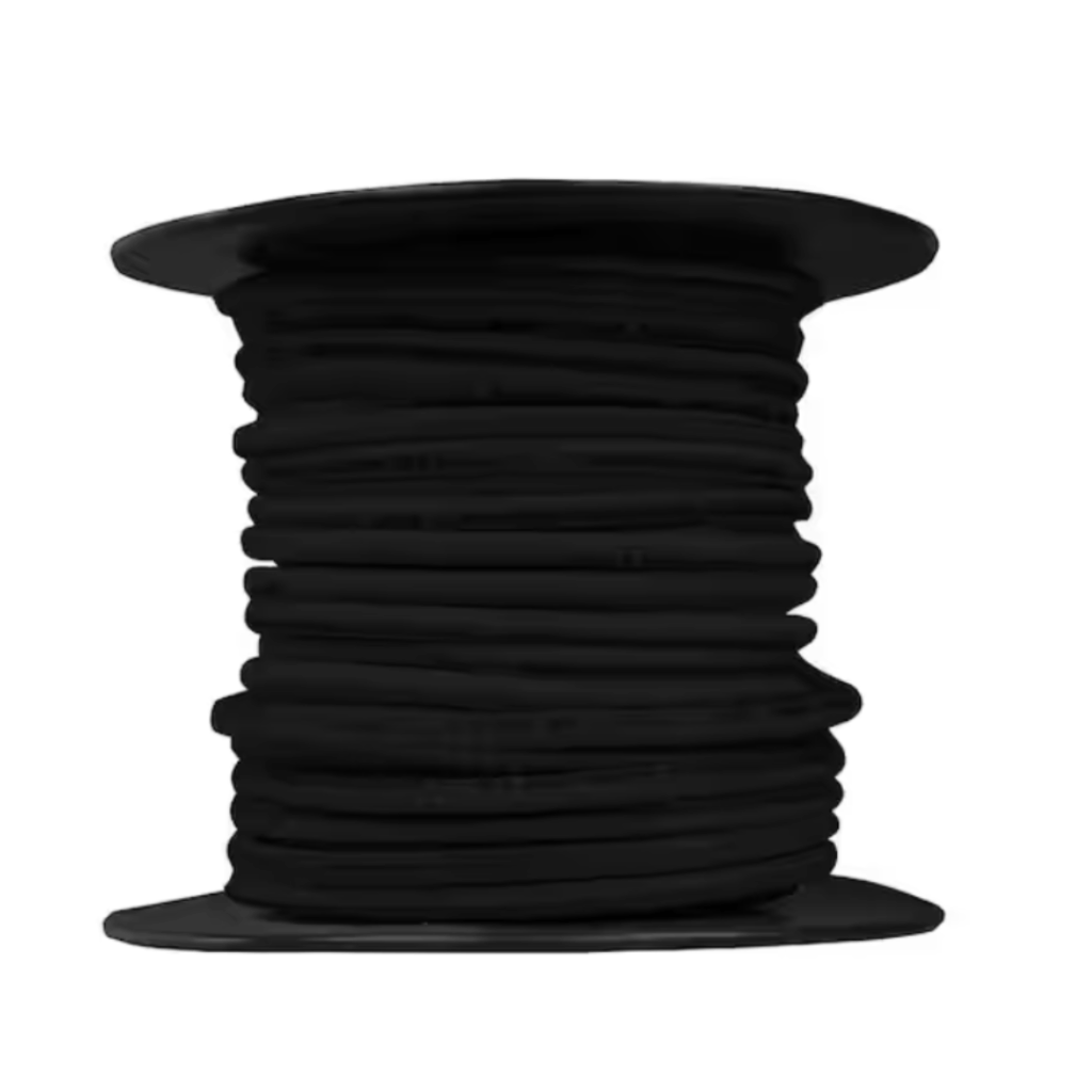 The Cerrowire 50 ft. Black 14-Gauge Solid THHN Wire is a single-conductor copper wire designed for indoor use. Rated for 600 volts and up to 25 amps, it is suitable for outlets, switches, and other electrical applications. This wire can be used in wet or dry locations and is ideal for conduit, cable trays, branch circuits, and appliance wiring.