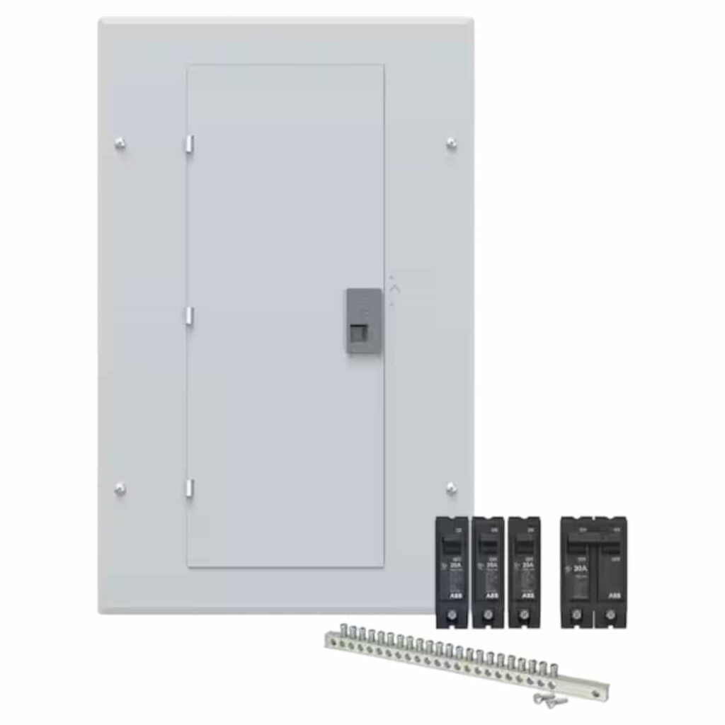 The ABB 125 Amp 24-Space 48-Circuit Main Breaker Indoor Load Center Value Pack comes pre-packaged with a selection of circuit breakers for convenient setup. This UL-listed load center features 100% rated split neutral connections on each side, compatible with #14–4 wire. The single-phase, 3-wire unit includes a factory-installed main breaker and is engineered for faster installation and reliable performance. It supports GFCI, AFCI, Dual Function, and standard circuit breakers.