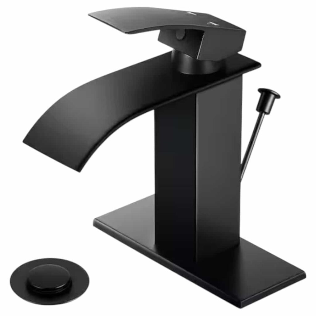 - Waterfall spout: extra-wide design delivers high water flow, with a single lever for smooth control of water flow and temperature.