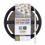 Armacost Lighting’s RibbonFlex Pro 24-Volt LED Tape Light is designed for large-scale lighting projects and professional-quality results. Perfect for accent applications such as under-cabinet, above-cabinet, tray ceiling, and shelf lighting, this LED strip delivers a clean, premium look with bright and efficient illumination. Built with professional-grade components for durability and longevity, the tape light installs easily using its peel-and-stick 3M adhesive backing. A 24-Volt power supply is required (sold separately). With 30 LEDs per meter, it provides ample brightness, making it especially effective for smaller or lower-light areas such as toe kicks.