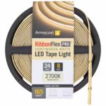 The Armacost Lighting RibbonFlex Pro 24-Volt Continuous LED Strip Light delivers seamless, professional-grade accent lighting. Using Chip-on-Board (COB) technology, it creates a continuous strip of light with no visible spots or breaks. Designed for lighting professionals, this LED tape features high-quality components for long-lasting, premium performance. Ideal for above- and under-cabinet lighting, tray ceilings, toe kicks, and installations near reflective surfaces like countertops or floors. Requires a 24-Volt Armacost Lighting power supply (sold separately) and can be paired with optional dimmers or switches (sold separately).