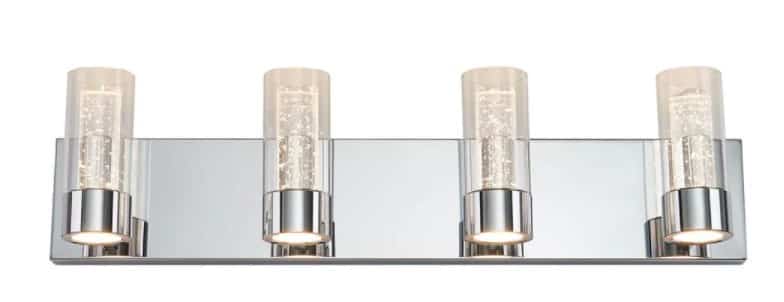 Give your interior a high-class look with the luxurious ratio 4 light fixture. With its 4 wide cylindrical shades made of transparent glass and enhanced with unique shiny bubbles, this mural applique is sure to give your home a sparkle. Your bathroom, bedroom and lobby are just some of the spaces that would benefit from this dazzling piece. The chrome frame and sumptuous flair of this model are also sure to bring incredible character to your decor. The ratio 4 isn’t only elegant, it also provides you with a lot of flexibility. By combining it with a dimmer, you can easily master all types of interior atmospheres. Affix it to a wall to discover how much this mural lighting fixture can enhance your interior.