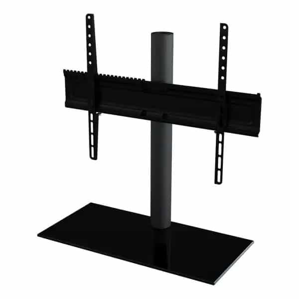 The AVF B600BB-A is a Universal Table Top TV Stand/Base for Most TVs 46 in. to 65 in. It supports TVs up to 99 lbs. It is VESA compatible with mounting hole patterns between 100×100 and 600×400. Universal TV Bases are perfect in situations where the original TV stand has been lost or discarded (which often happens when a TV has been wall mounted). These Universal Pedestal-Style bases are also excellent, robust replacements for the widespread TV feet that are provided with some TVs. In many cases, the widespread, duck-feet, do not allow a TV to fit safely on a TV stand or other furniture. The gloss black finish compliments any TV and decor.