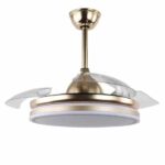 Light up your home with this modern retractable drum ceiling fan. Hidden fan blades are housed in the top of the fan and will only open up when you turn it on. Black/chrome/gold/white metal hoops orbit the fixture with LED light kit for lovely illumination. The LED light is CCT dimmable, you can choose the suitable light tongue from Cool, Neutral and Warm light for your living space. 3 variable fan rotation speeds insure you find just the right comfort level. The included remote control will make operating this lighting fixture a breeze.