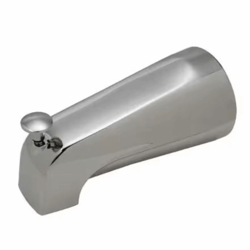 The BrassCraft Mixet Diverter Tub Spout features a 5-1/8 in. length and a built-in Quiklift diverter for reliable water redirection. Designed for 1/2 in. nominal copper pipe (5/8 in. O.D.) connections, this spout offers a straightforward installation process and is suitable for a range of plumbing applications.