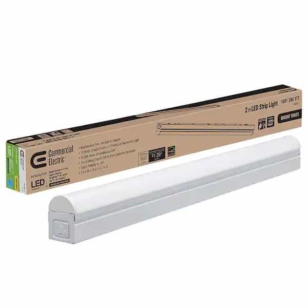 Commercial Electric 2 ft. Linkable LED Strip Light Fixture with optional hardwire or plug-in power connection is designed to replace an outdated fluorescent light with an energy-efficient integrated LED fixture. Our versatile strip light is ideal for narrow linear applications and linkable for larger lighting layouts. With its superior long-lasting light engine, this strip light fixture ensures maintenance free service for up to 50,000 hours. Ideal for work bench, tool bench, garage, storage room, utility room, closet, pantry, bonus room, craft room and more.