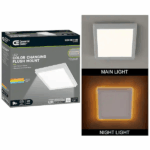 Commercial Electric 9in. LED Square Flush Mount with Night Light feature is the perfect combination of Contemporary design and innovative LED technology. Turn on the Night Light feature which glows a Soft Amber color around the fixture providing warm ambient lighting. Prior to installation, choose between 3 color temperatures of light output: Soft White, Bright White or Daylight depending on your location. Installation is a breeze using the TwistFit to Junction box mounting; just twist and lock firmly into place. Perfect for the DIY-er! This LED flush mount provides crystal-clear illumination and superior light engine for maintenance free service with absolutely no bulbs to replace. Great for bedrooms, bathrooms, living room, entry way, hallway, kitchen, basement, sun room, office, retail shops or lobby.