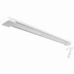 Commercial Electric’s 3 ft. Single LED Utility shop light uses 30-Watts and comes fully assembled with an ultra-light weight, sleek, modern design that can be used in hanging or flush mount installations. This LED Light lasts up to 50,000-hours and emits a bright light of 3000 lumens which is equivalent to a standard 2 lamp fluorescent fixture. This no-humming LED Shop Light offers instant full brightness to any dark area even in sub-zero temperatures. The light weight and durable smooth edge polycarbonate housing and back plate provides the light you need by simply plugging in with the included 5 ft. cord. There are no lamps to dispose of or replace with this 3 ft. 1 lamp LED shop light, making it ideal for any garage, game room, basement, work bench, closet or cabinet. This shop light can be hung with the two included 6 in. hanging chains or flush mounted with the included mounting screws.