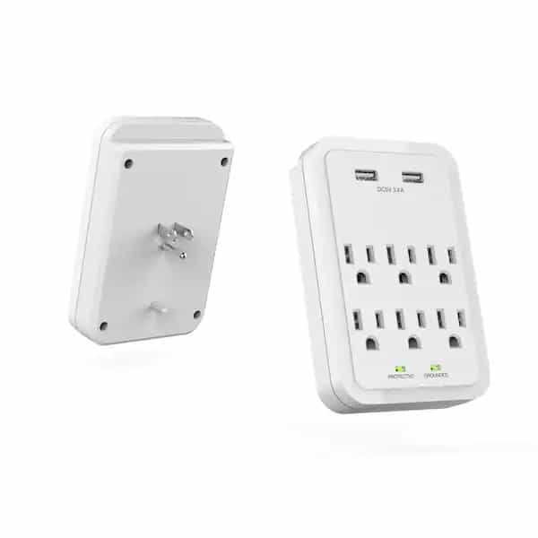 Designed to totally charge your phones and tablets without sacrificing outlets, the 3-pack surge kit comes with 2, 7-outlet surge protectors and 1, 6-outlet wall mount surge. A wide spaced outlet of power strip allows room for an AC power block and is protected with 900J. The protectors feature 2 USB 3.4 Amp ports for dual-device charging.