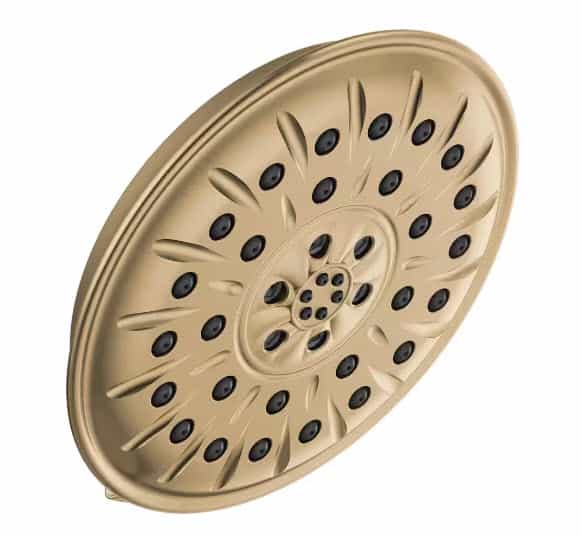 Introducing the Delta 52487-CZ 4-Spray 8.3 in. Single Wall Mount Fixed H2Okinetic Shower Head in Champagne Bronze: