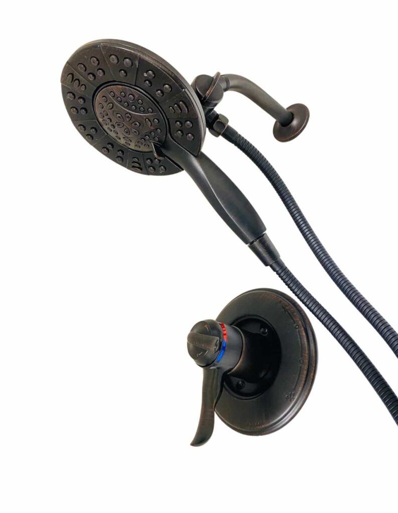 - Adjust water pressure and temperature individually with dual function handle