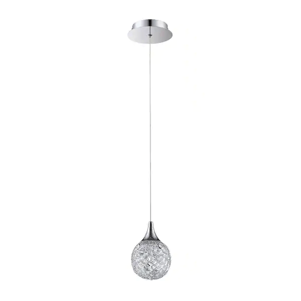 Enhance your decor with the SOLARO series 1 light Pendant. The clean chrome of the mesh shade features Optic Crystal Jewel insets. Over-all height is fully adjustable to suit any application and bring your space alive with discriminating style.