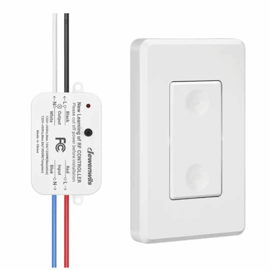 This wireless light switch and receiver kit allows easy expansion of your lighting system without any rewiring. Simply install the receiver between the power source and the lighting fixture—no in-wall wiring needed—and control your lights remotely. The strong RF signal works through walls and doors without requiring line of sight between the remote and receiver. Programmable and expandable, this system is ideal for controlling lights in staircases, basements, garages, lofts, and more.