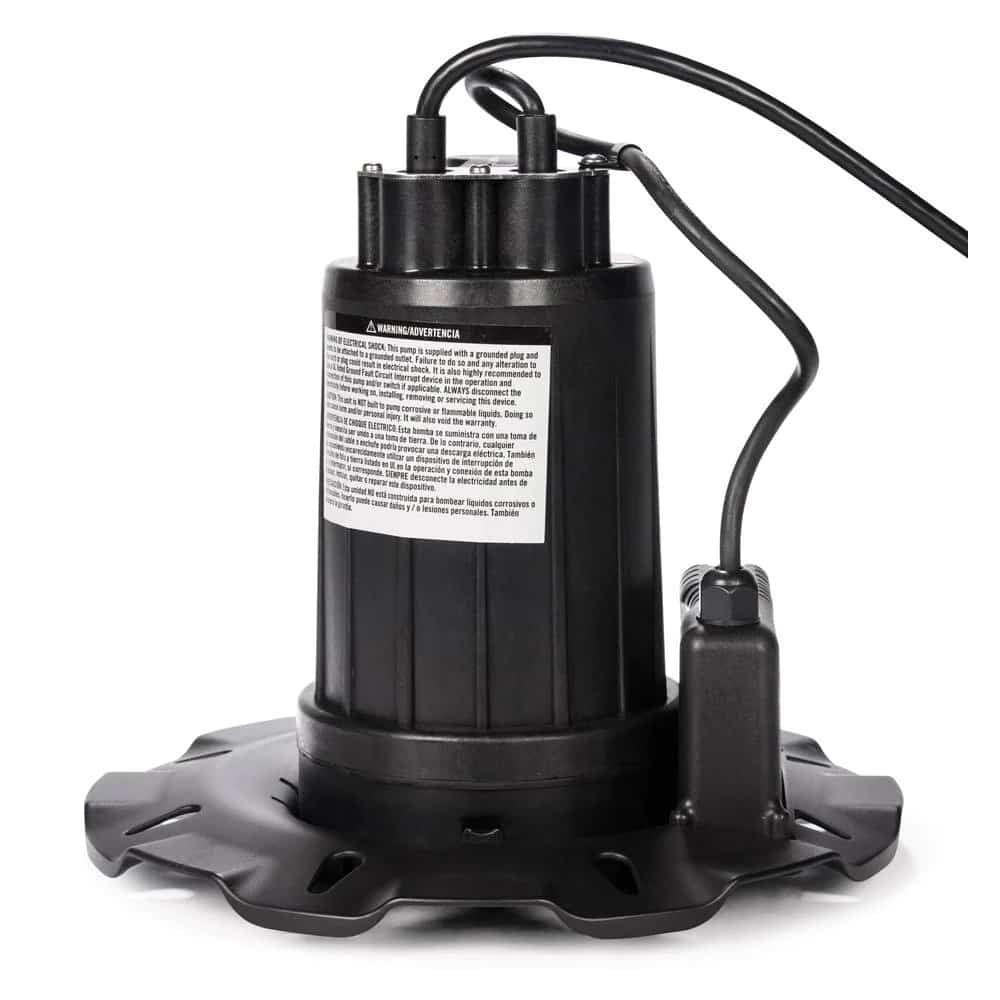 The Everbilt 1/4 HP pool cover pump is designed to remove water from pool covers. It has an innovative and reliable mini-float switch to detect water on pool covers. The mini-float switch will turn the pump on when water levels reach approximately 1-9/16 in. and turn the pump off when water levels reach approximately 3/8 in.