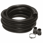 Quickly manage flooding with the versatile Everbilt 1-1/4 in. x 24 ft. Sump Pump Discharge Hose Kit. The large-diameter hose supports high flow rates, making it ideal for fast drainage in flooded areas. Its universal design fits most sump and utility pumps with either a 1-1/4 in. or 1-1/2 in. female NPT discharge, or a 1-1/4 in. insert (barb) adapter. The kit includes multiple adapter options for flexible installation.