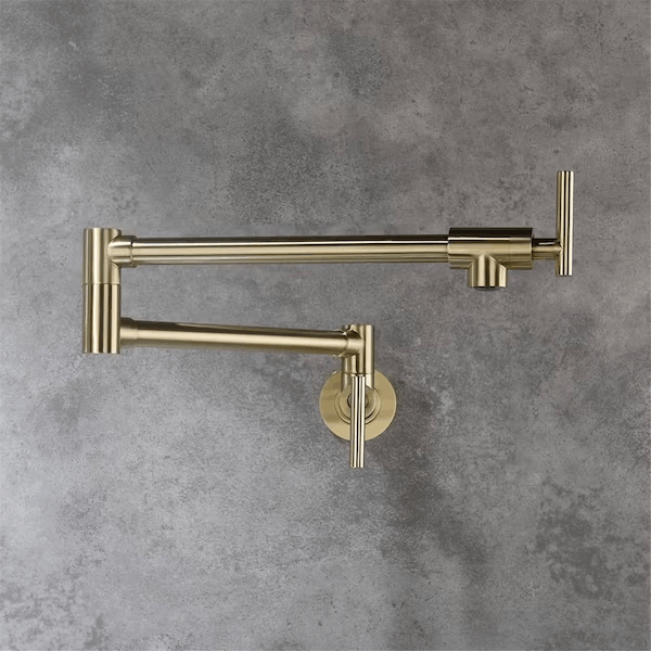 The wall-mounted pot fillers perfectly blend today’s modern design and reliability with classical elegance and grace. Designed to retract and swivel above your stove, this product keeps cooking tasks efficient. This commercial pot filler faucet has dual swing joints that extends to up to 26 inches in length, it features a 2-piece articulated spout which is capable of freely folding out of the way if you are not using the faucet. It with durable finish and provide long-lasting function due to their sturdy brass construction,this pot filler is easy to clean and has a ceramic disk cartridge to ensure drip-free usage.The dual handles prevent unwanted water spillage while enhancing the modern theme. So it is your best choice in your family!
