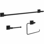 The Maxted Collection from Franklin Brass features modern architecture with clean lines and a balanced frame. This wall-mounted 3-piece bath accessory set includes a 24 in. towel bar, a toilet paper holder, and a hand towel ring—everything you need to refresh your bathroom in one easy upgrade. Designed with durability and style in mind, the matte black finish brings a sleek, contemporary look that will last for years.