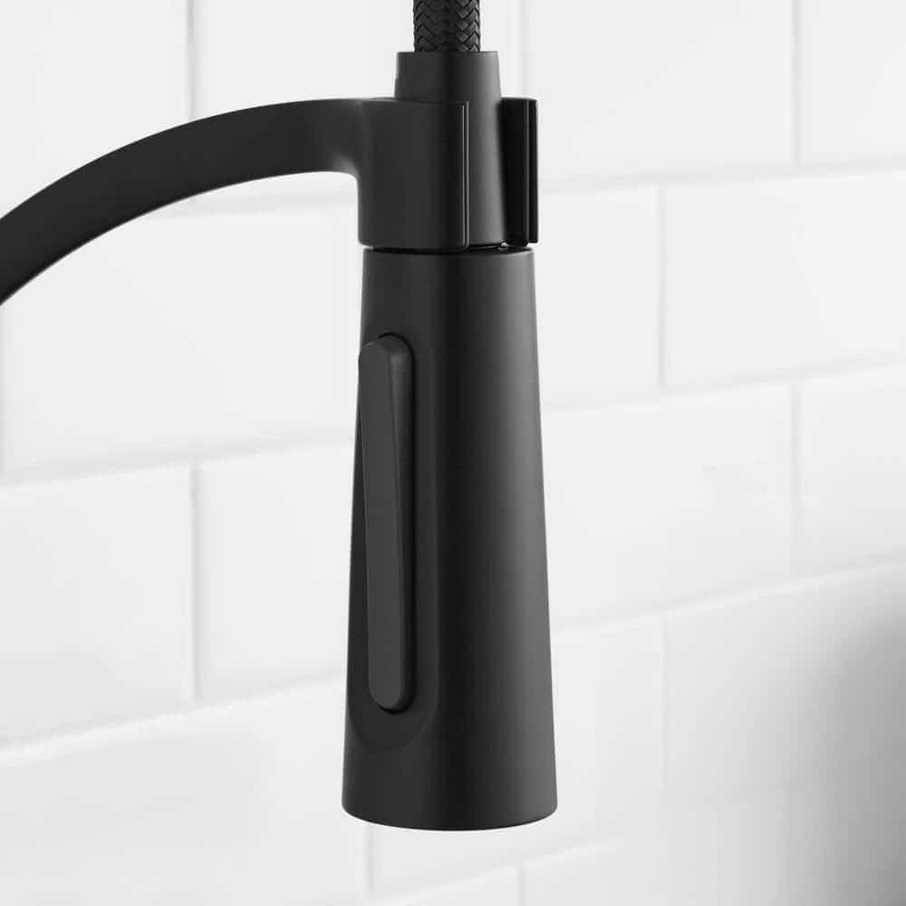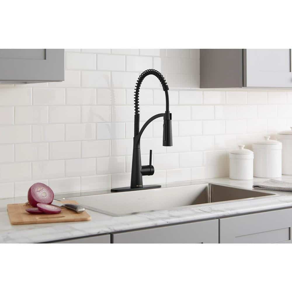 Bring a professional look to your kitchen with the streamlined style of the Brenner semi-professional kitchen faucet. The Matte Black finish gives it a modern look, sure to fit any decor. A spring-neck design allows for flexible functionality in getting water where you need it.