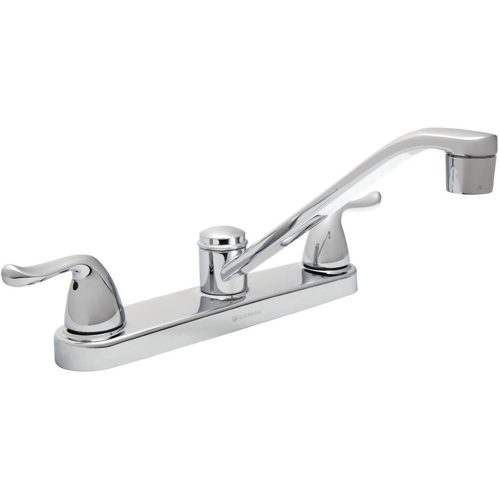 The Glacier Bay Constructor 2-Handle Kitchen Faucet in Chrome features durable long-lasting metal construction and an easy to clean chrome finish. A classic look that complements a wide variety of kitchen decor, this faucet features a convenient dual-handle design with separate handles for hot and cold that give you precise control of your water temperature. Pair with other pieces from the Constructor Collection for a complete and polished look.