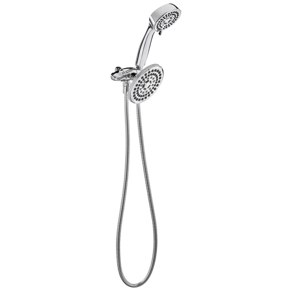 - 1-spray raincan shower head with 6-function handheld hand shower that features full spray, power spray, massage, combo full spray and power spray, combo full spray and massage, and pause