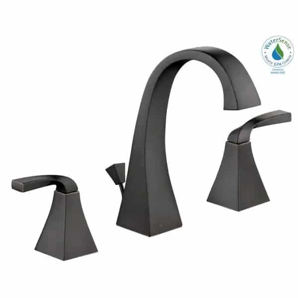 Beautiful and striking, that is how to best describe this Leary Curve 8 in. Widespread 2-Handle High-Arc Bathroom Faucet in Bronze. It is absolutely the faucet you need to update your bathroom. This faucet will complement any decor style you might have. The curved lines of the high-arc spout give this faucet a distinctive look. It is WaterSense certified with a 1.2 GPM rate to help reduce water use and ceramic disc cartridges to prevent drips. Easy to use with a 2-handle design, installation is a breeze with the 1/2 in. connection and deck plate mount. This faucet features the Glacier Bay Exclusive ClickInstall drain assembly for quick and simple installation. Pair this bathroom faucet with other pieces in the Leary Curve collection for a complete and polished look.