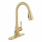 Style and functionality combine with this Sadira Touchless Single-Handle Pull-Down Sprayer Kitchen Faucet with TurboSpray and FastMount in Matte Gold. It provides a 1.8 GPM flow rate and a battery-powered sensor for hands-free operation. The high-arc spout allows you to maximize sink space.