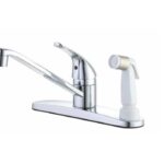 - The Glacier Bay Single-Handle Deck-Mount Side Sprayer Kitchen Faucet in Chrome is classically styled with smooth and simple curves and a bright chrome finish that will complement many kitchen styles. Featuring a single lever handle for easy water control, this faucet also has a handy side sprayer for various kitchen tasks. Easy to install with only 3-sink holes required, this faucet will provide years of performance and functionality. The 1.8 GPM flow rate will provide excellent water pressure for your needs.