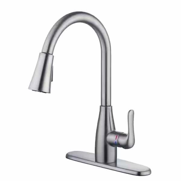 The McKenna Single-Handle Pull-Down Sprayer Kitchen Faucet in Stainless Steel with TurboSpray and FastMount offers a sleek style that will complement any decor. Easy-to-use with a single handle design, this faucet has a convenient pull-down spray wand with 2-spray modes and a long reach that makes easy work of kitchen tasks. The pull-down sprayer features an aerated spray and a new TurboSpray that is exclusive to Glacier Bay. Featuring a ceramic disc cartridge for drip free performance, the 1.8 GPM flow rate also provides excellent water pressure for your cleaning needs. This kitchen faucet also includes the exclusive FastMount mounting system to make installation quicker and easier.