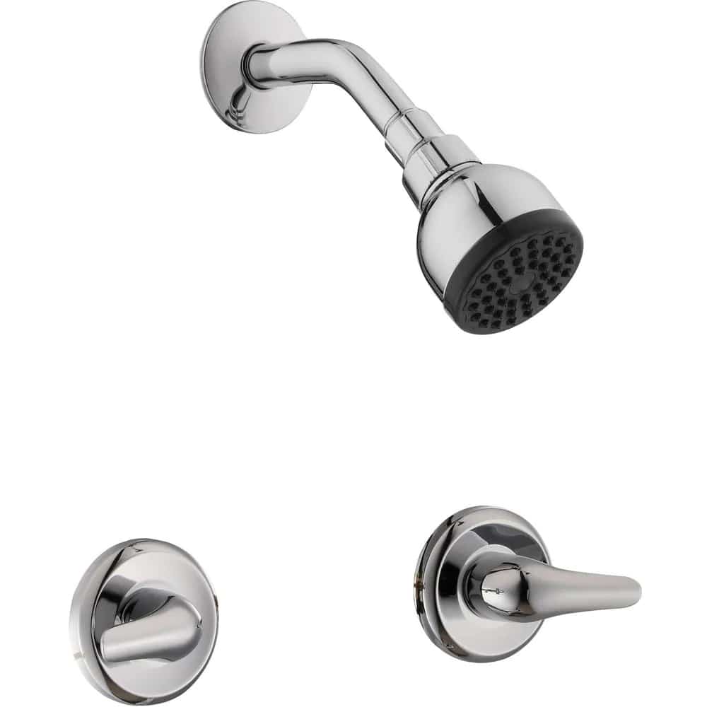 This practical yet attractive Aragon 2-handle 1-spray shower only faucet in chrome has a classic design that easily blends with multiple decorating styles. The chrome finish looks fresh and clean. This fixture is built to maintain a constant temperature for a safe and comfortable shower experience. This shower unit is WaterSense certified, with a 1.8 GPM flow rate to help conserve water. The lever handles are ADA compliant. The 2-handle design gives you convenient control over water flow and temperature, while the single function shower head is simple and easy to operate. Pair with other pieces from the Aragon Collection for a complete and polished look.