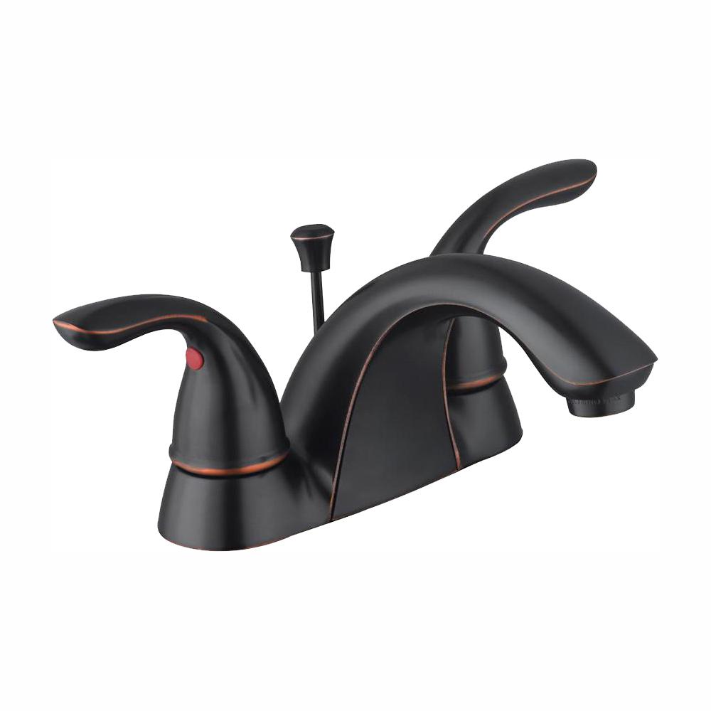 The Glacier Bay Builders 4 in. Centerset 2-Handle Low-Arc Bathroom Faucet in Bronze combines elegance with functionality and complements a variety of bathroom decor styles. WaterSense certified with a 1.2 GPM flow rate to help reduce water use and ceramic disc cartridges to help prevent drips, this faucet meets and exceeds the highest standards of efficiency. The 2-handle design, low-arc spout and deck-plate mount make it easy to use and easy to install. This faucet features the Glacier Bay exclusive Click Install drain assembly for quick and simple installation. Pair with other pieces from the Builders collection for a complete and polished look throughout your bathroom.