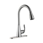 With the simplicity and style to complement any kitchen setting, the Carla Single-Handle Pull-Down Sprayer Kitchen Faucet features a spray head with two modes. Choose between full and aerated sprays for varying cleaning tasks. This kitchen faucet boasts a timeless stainless steel finish to offer modern, contemporary style in your space. With a high-arc, pull-down sprayer, this fashionable faucet boasts an efficient 1.8 GPM water flow rate and includes a ceramic disc valve for drip-free performance.