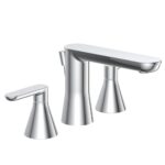 - 8 in. deck-mounted widespread design for easy, 3-hole installation