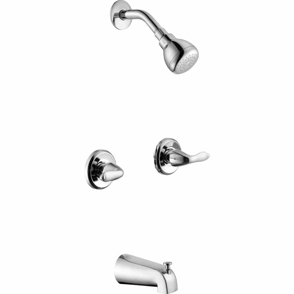 Glacier Bay Constructor 2-Handle 1-Spray Tub and Shower Faucet in Chrome features a classic design and beautiful finish. The faucet maintains a consistant temperature for safety and comfort. It has a solid brass valve body to ensure a long lifespan and is WaterSense certified with a 1.8 GPM flow rate. The ceramic disc valve ensures drip-free performance. A limited lifetime warranty is included.