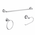 - Expandable towel bar allows you to install the towel bar as 18 in., 21 in., or 24 in. depending on your needs and available space, kit also includes toilet paper holder and towel ring