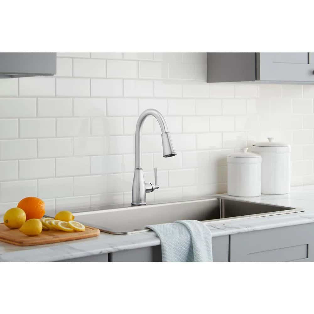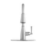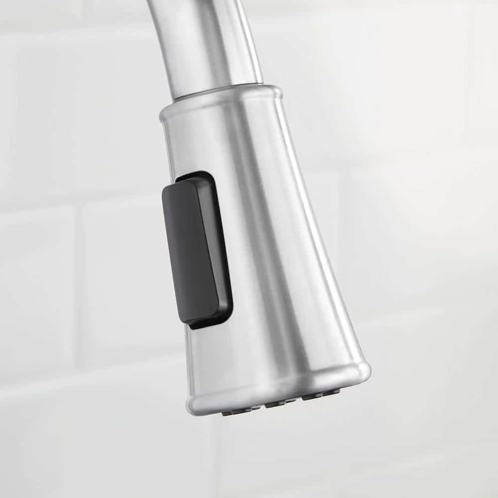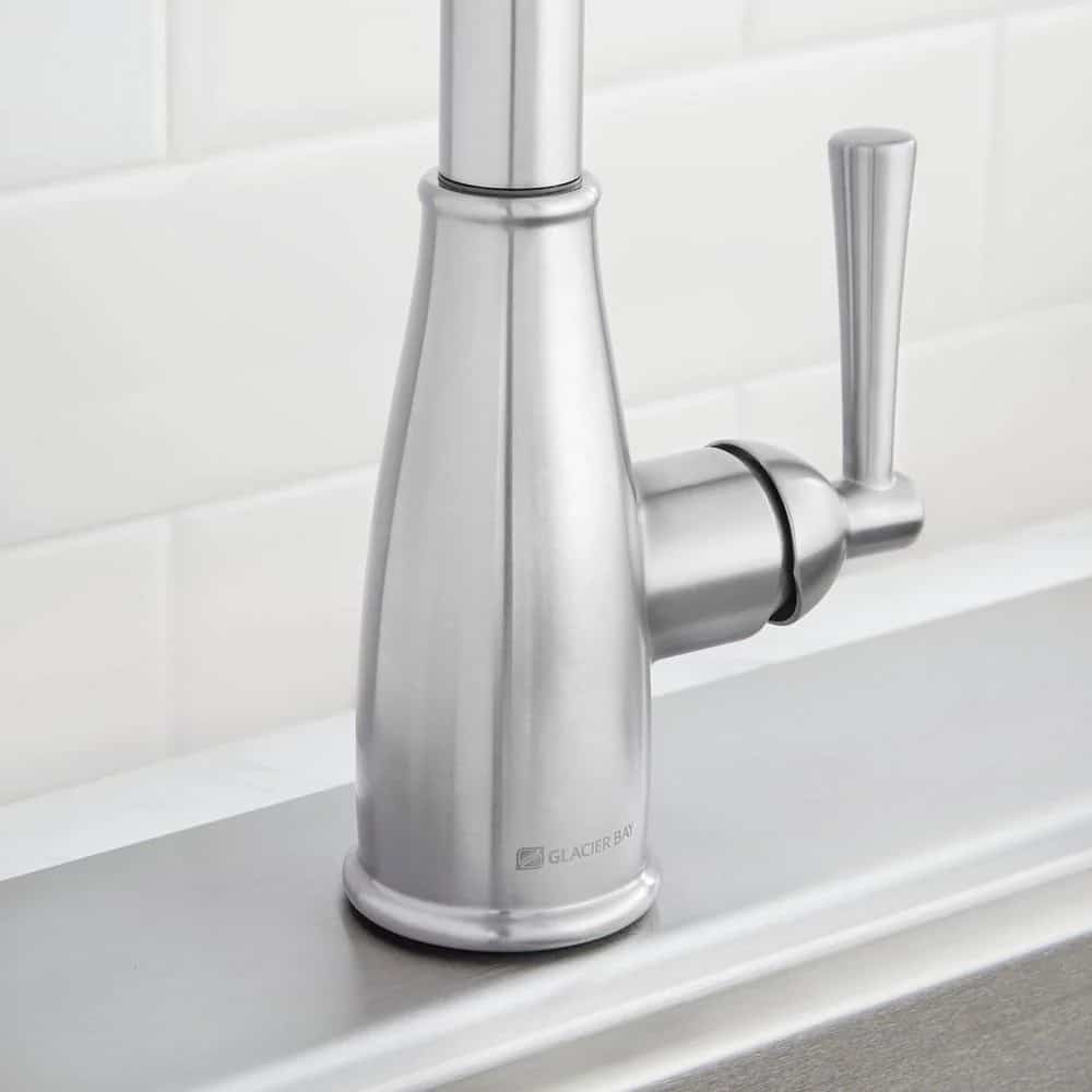 The Fairhurst Single-Handle Pull-Down Sprayer Kitchen Faucet in Stainless Steel offers a sleek style that will complement any decor. Easy-to-use with a single handle design, this faucet has a convenient pull-down spray wand with 2-spray modes and a long reach that makes easy work of kitchen tasks. The pull-down sprayer features an aerated spray and a new TurboSpray that is exclusive to Glacier Bay. Featuring a ceramic disc cartridge for drip free performance, the 1.8 GPM flow rate also provides excellent water pressure for your cleaning needs. This kitchen faucet also includes the exclusive FastMount mounting system to make installation quicker and easier.