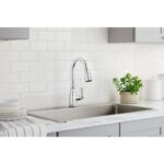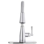 The Fairhurst Single-Handle Pull-Down Sprayer Kitchen Faucet in Chrome offers a sleek style that will complement any decor. Easy-to-use with a single handle design, this faucet has a convenient pull-down spray wand with 2-spray modes and a long reach that makes easy work of kitchen tasks. The pull-down sprayer features an aerated spray and a new TurboSpray that is exclusive to Glacier Bay. Featuring a ceramic disc cartridge for drip free performance, the 1.8 GPM flow rate also provides excellent water pressure for your cleaning needs. This kitchen faucet also includes the exclusive FastMount mounting system to make installation quicker and easier.