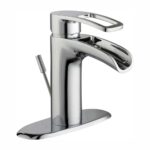 The Glacier Bay Kiso 4 in. Centerset Single-Handle Low-Arc Bathroom Faucet in Chrome has a modern design that will complement a variety of contemporary bathroom decor. Single-handle for easy use, the ceramic disc cartridge helps ensure drip-free performance, while the low-arc spout offers a compact design. WaterSense certified, this efficient faucet features a 1.2 GPM flow rate to help reduce water use. This Faucet features the Glacier Bay exclusive ClickInstall drain assembly for quick and simple installation. Pair with other pieces from the Kiso collection for a complete and polished look.