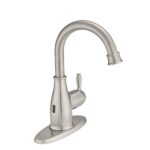 The Glacier Bay Mandouri Touchless Single-Hole Single-Handle High-Arc Bathroom Faucet in Brushed Nickel is a faucet that blends innovation with style. The intuitive sensor allows hands free use of the faucet, simply wave your hand in front of the sensor to start and stop the flow of water. WaterSense certified, this efficient faucet features a 1.2 GPM flow rate to help reduce water use and a ceramic disc valve to ensure drip-free performance. The faucet may be installed with or without the deck plate for single-hole or 3-hole installation. Pair this faucet with other pieces in the Mandouri collection to complete your bathroom transformation.