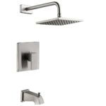 The Glacier Bay Marx Single-Handle 1-Spray Tub and Shower in Brushed Nickel provides a sleek modern design at an affordable price. This unit includes the rough-in valve to provide a one stop solution for your shower upgrade. WaterSense certified, this faucet has a 1.8 GPM rate to help reduce water use and a ceramic valve for smooth operation and long life. While the unit uses less water, the showerhead provides a superb showering experience. Featuring an 8 in. W spray face, the showerhead provides an increased spray force and a wider spray pattern. The single-handle design gives you convenient, 1-handed control over water flow and temperature. This unit includes a pressure balancing system to ensure a comfortable and consistent showering experience.