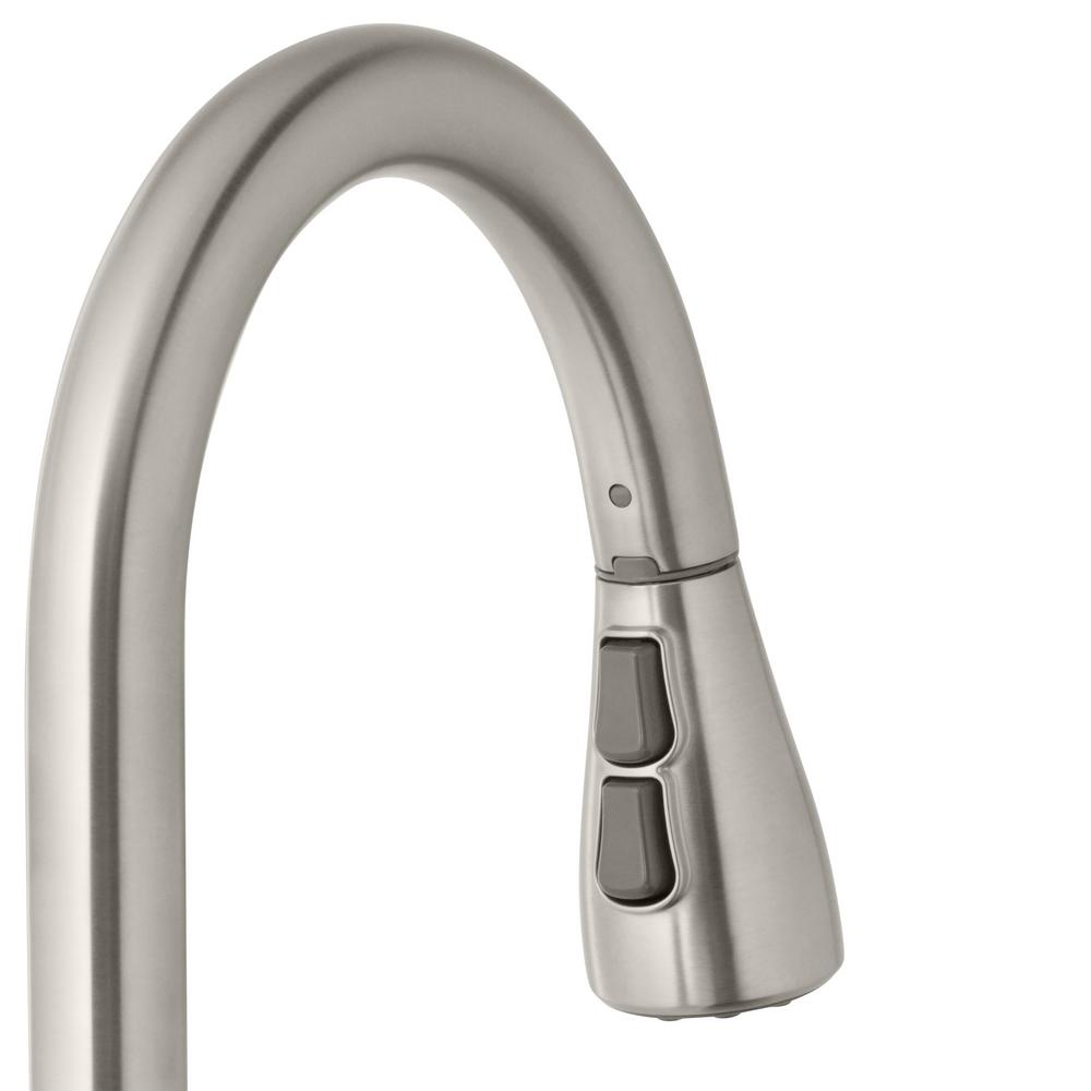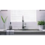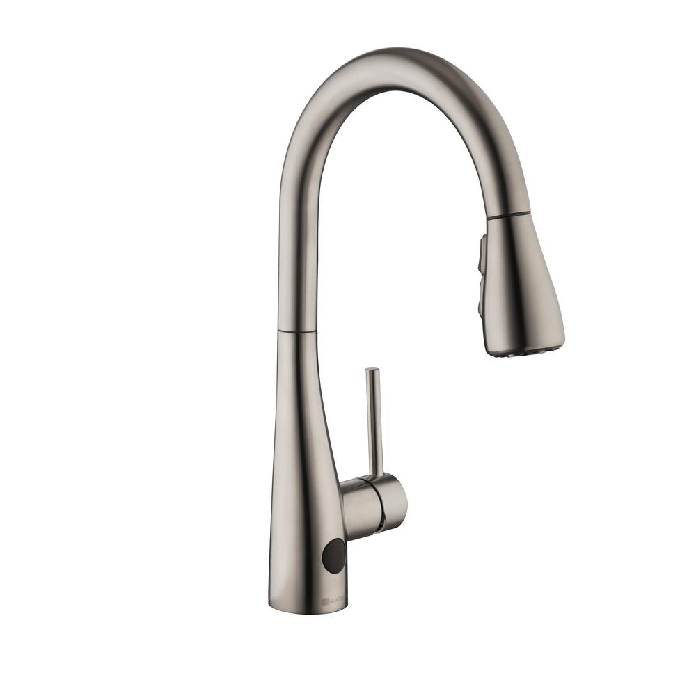 This Glacier Bay Nottely Single-Handle Pull-Down Sprayer Kitchen Faucet boasts an intuitive, battery-powered sensor that enables hands-free use to help reduce spreading bacteria. This innovative kitchen faucet is equipped with the powerful TurboSpray setting for your toughest cleaning tasks. The exclusive feature provides focused water columns with 30 percent more power than standard pull-down faucets. This single-handle kitchen faucet enables easy and precise water temperature control, while providing a 1.8 GPM flow rate for outstanding water flow. Its ceramic disc cartridge ensures drip-free performance. Get ample kitchen space from its high-arc spout and a modern look with its stainless steel finish and curved minimalist design. Installation is quick and easy with this kitchen faucet’s FastMount system.