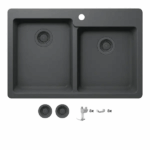 The Glacier Bay granite composite sink is the perfect addition to any kitchen. Granite composite is a premier kitchen sink material-it is easy to clean and extremely durable. It is scratch, stain, chip and heat resistant to 535°F. All Glacier Bay granite composite sinks are backed by a limited lifetime warranty. The sinks also look great and are available in four colors (black onyx, white ice, gray ice and charcoal gray) that coordinate with virtually any kitchen decor. A color matched drain is included for a perfectly coordinated look.