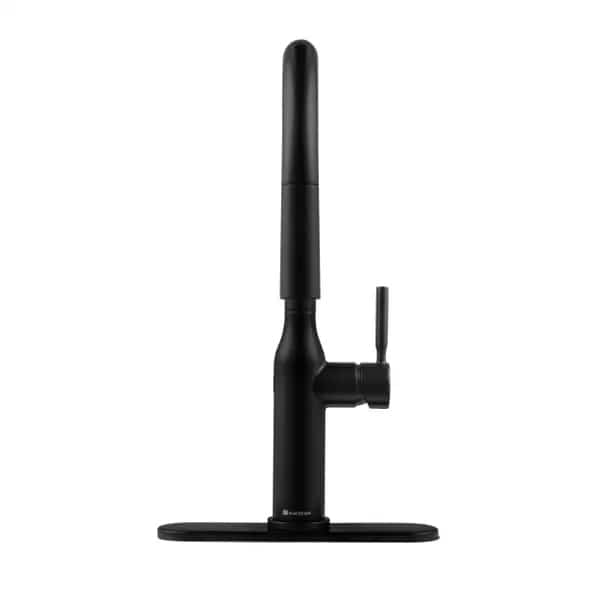 The Glacier Bay Upson Single-Handle Touchless Pull-Down Sprayer Kitchen Faucet blends innovation and style to bring you an aesthetically pleasing design to suit your kitchen needs. Boasting a matte black finish for a contemporary look, it features an intuitive sensor that offers hands free use to reduce the spread of bacteria-simply wave your hand in front of the sensor to start and stop the flow of water. The pulldown sprayhead boasts both aerated spray and TurboSpray features that deliver optimum performance to ensure pots, pans and other dishes are spotless. This faucet also features the Glacier Bay exclusive FastMount installation system for quicker and easier installs. The 1.8 GPM flow rate and ceramic disc valve ensure excellent water pressure and drip-free performance. Includes matching soap dispenser.