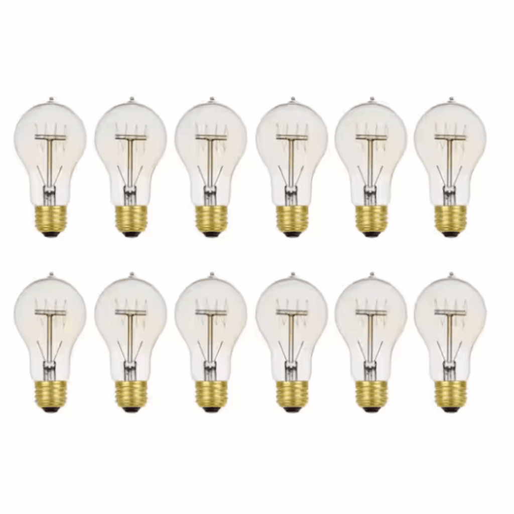 Globe Electric’s 60-Watt Vintage Edison A19 Quad Loop Incandescent Filament Bulb brings a touch of character and nostalgic charm to any space. Featuring a visible tungsten filament that recreates the iconic single hairpin loop from original Edison-style bulbs, it’s ideal for vintage decor, architectural restorations, or creating a retro-inspired atmosphere. The squirrel cage filament produces a warm, ambient glow and is fully dimmable, making these bulbs perfect for accent lighting or mood settings. Best showcased in fixtures with clear shades or exposed sockets, these bulbs add visual interest and a vintage flair, ideal for both classic and contemporary interiors. The standard E26 base ensures compatibility with most household fixtures. Sold in a pack of 12.