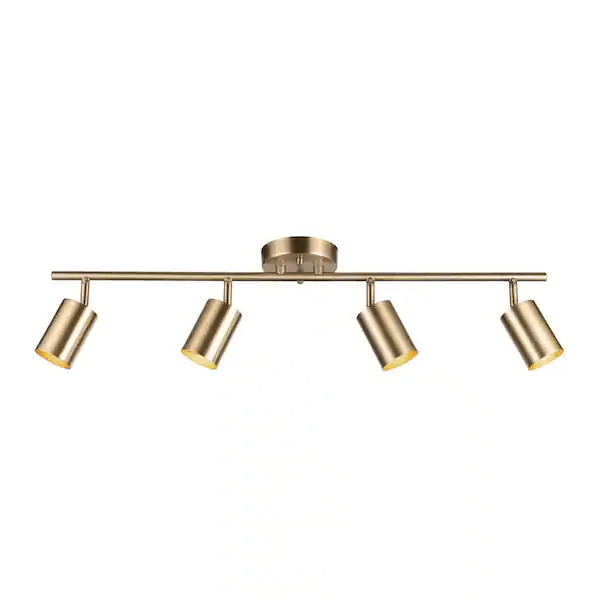 The Pratt Collection by Globe Electric offers a variety of styles that keep elegance in mind. With 4 cylindrical track heads that protrude from a slender track bar which sits on the ceiling with a matte brass canopy, the Pratt 4-Light Track Light becomes the perfect way to illuminate your home. The matte brass color accents any decor while the slim, streamlined profile is great for placement – perfect for adding a little glam to your bedroom, living room, kitchen, hallway or den.