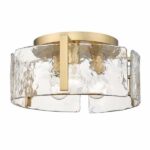 Aenon’s universal style positions the series as a contemporary design that is a perfect fit for transitional to modern homes. The striking Hammered Water Glass draws the eye and quickly becomes a topic of conversation and admiration. Strong masculine steel arms cradle Aenon’s unique glass, suspending them in mid-air. When lit, the Hammered Water Glass panels contrast the striking Brushed Champagne Bronze finish and reflect the bright light. Playful shadows created by this glass offer an intimate ambiance.