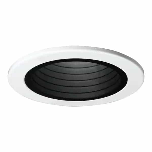 The E26 series 4 baffle trims trap and shape light to minimize aperture glare and reduce ceiling brightness. Baffles narrow the focus of the downlighting beam and may be used with numerous different reflector lamps (R, BR, MR, GU10, PAR, and LED lamps). For use in conjunction with 4 in. new construction or remodel recessed housings.