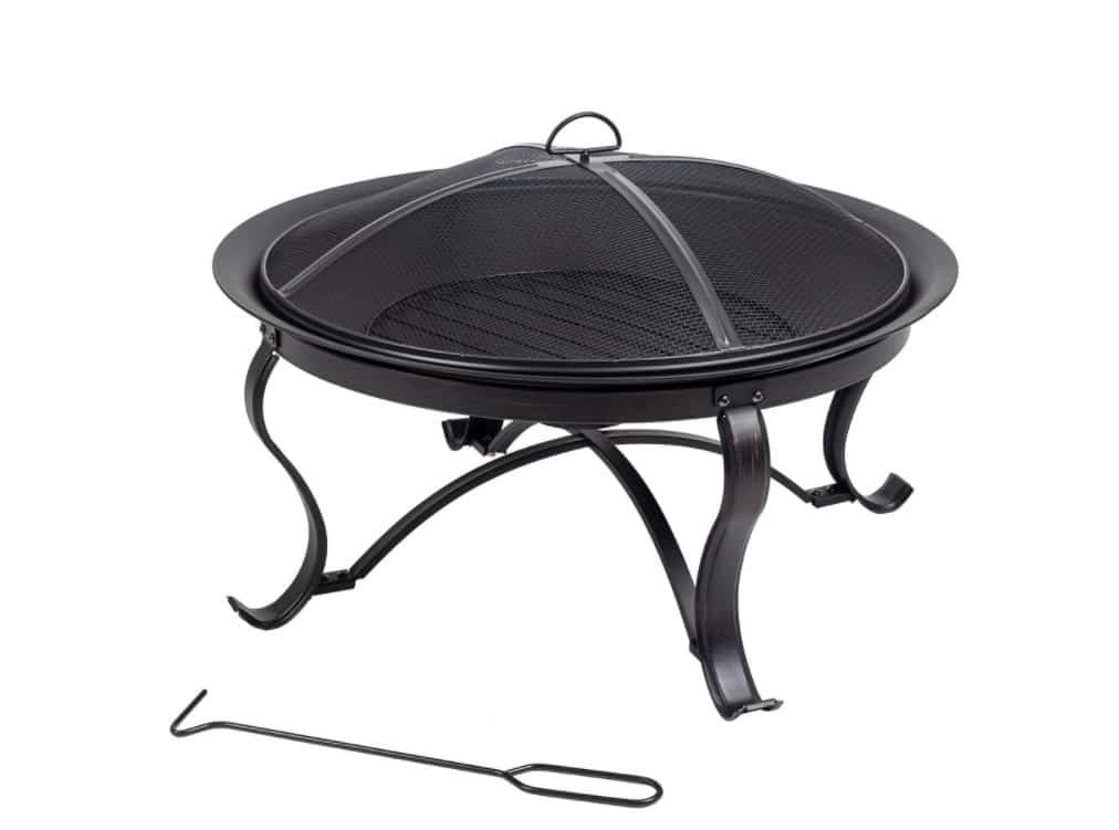 The 30 in. Sadler Wood Burning Fire Pit from Hampton Bay has eye catching decorative legs paired with a rubbed bronze fire bowl that is sure to make any patio pop. This 30 in. round fire pit will fit right in with all of your backyard accessories. A wood grate is included to make your fires larger and more consistent as well as drain holes to keep your pit free of rainwater. A mesh cover and poker are also included to complete your setup.
