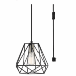 The Brielle Hardwire Pendant features a striking geometric cage design that brings a stylish mid-century modern touch to any space. With a matte black finish and coordinating socket, this 1-light pendant offers bold visual appeal. Its black fabric cord adds a subtle texture and allows versatile placement—perfect for creating a statement in any room. Pair it with a vintage Edison bulb for a classic vibe, or choose a tube or globe-style bulb for a more modern twist.
