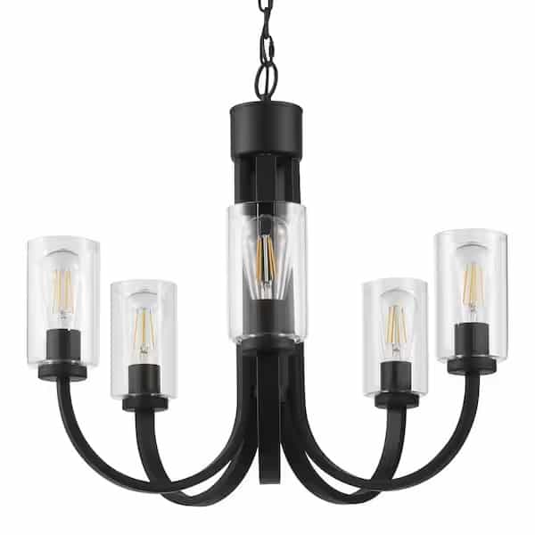 Highlight your bathroom with this Kendall Manor Five-Light Matte Black Dining Room Chandelier with Clear Glass Shades. Easily install this light in various spaces within your home. The matte black finish can complement your existing decor.