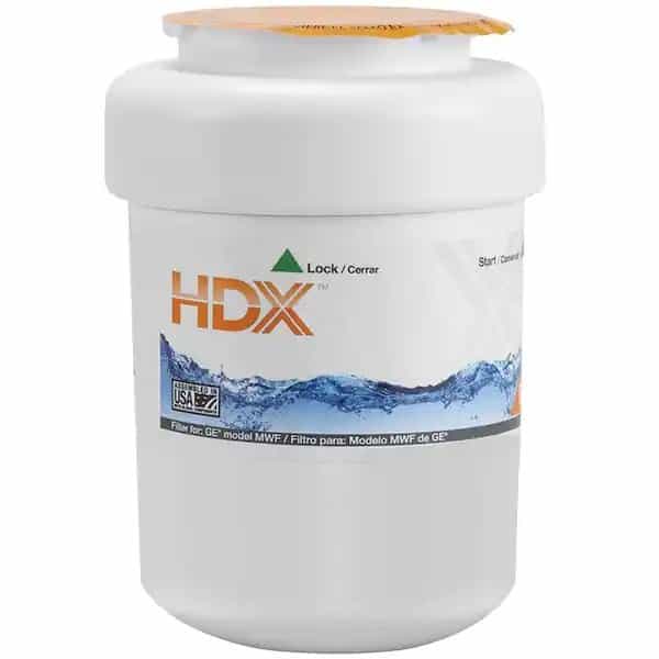 This HDX replacement refrigerator water filter fits in place of GE MWF. The filter features carbon block filtration technology which provides tremendous capacity to remove and/or reduce lead, chlorine taste and odor and sediment that may be present in your drinking water. This HDX filter provides you with fresher, better tasting water and ice from your GE Appliances refrigerator. NSF Certified to Standards 42 and 53 to ensure quality and performance.